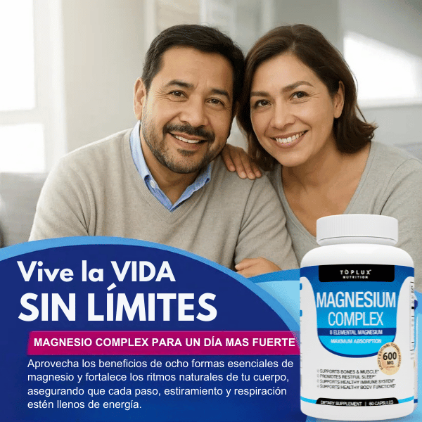 El Magnesio Complex 8.0 de Toplux Nutrition es un suplemento completo que combina 8 formas de magnesio elemental para garantizar: